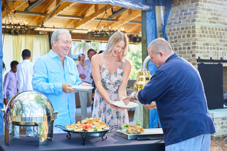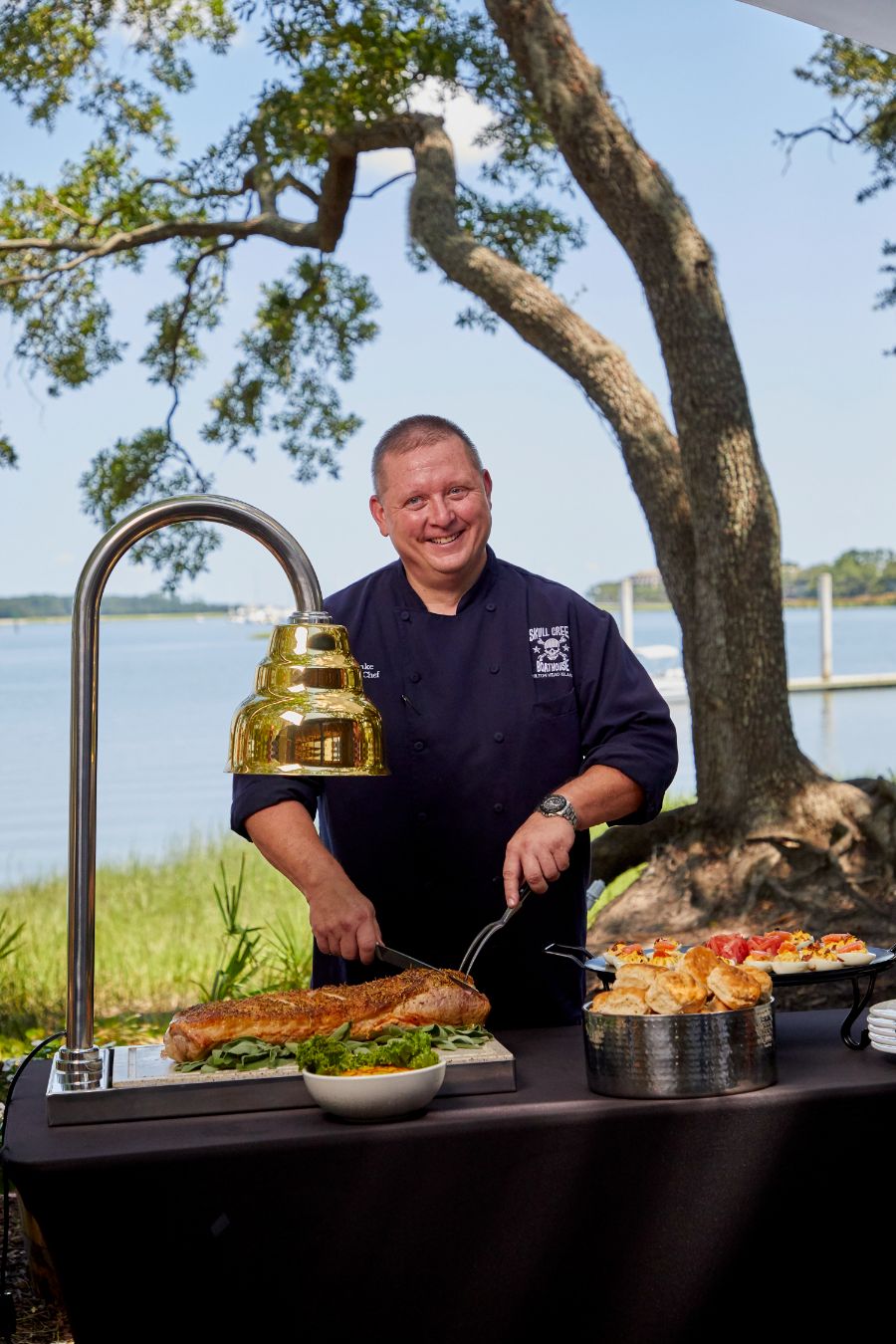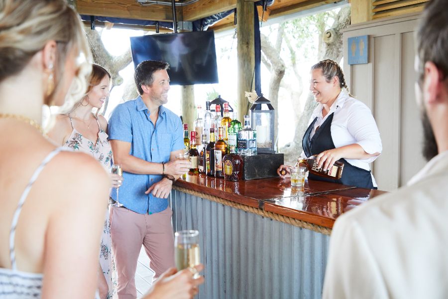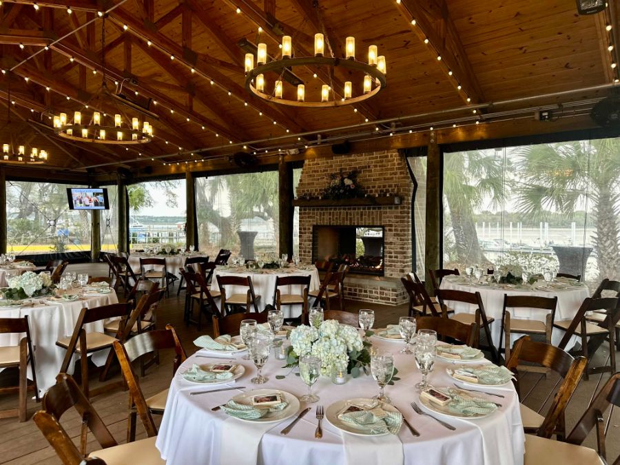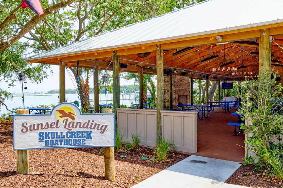 Just steps from Skull Creek Boathouse, the Sunset Landing Pavilion is a private waterfront venue perfect for rehearsal dinners, corporate events, family reunions, birthday celebrations, and more. Featuring its own bar, multiple TVs, a working brick fireplace, and the same breathtaking sunset views the Boathouse is known for, the Pavilion blends comfort and coastal charm. It’s an effortless way to host unforgettable gatherings with iconic Skull Creek scenery as your backdrop.